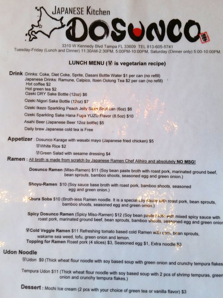 “ First timer at Dosunco and I was impressed by the taste of the ramen! I ordered the Spicy Ramen and it was very delicious. I paired my ramen with a green tea and a side of takoyakiz, which was also blessed by the chefs behind the counter. It's a small location in the corner of a small plaza in the heart of Tampa. Limited parking just like everywhere else in Tampa. Our server was very kind and not intrusive. I definitely enjoyed my time and the food. Will be back again when I'm in the area and in the mood to get spicy for lunchtime. ”